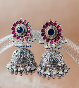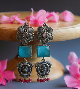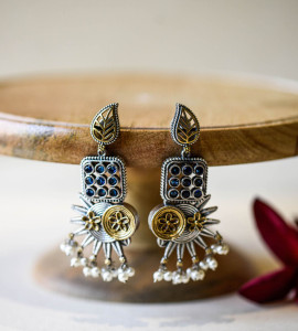 Gold Silver Blue Chand Earrings